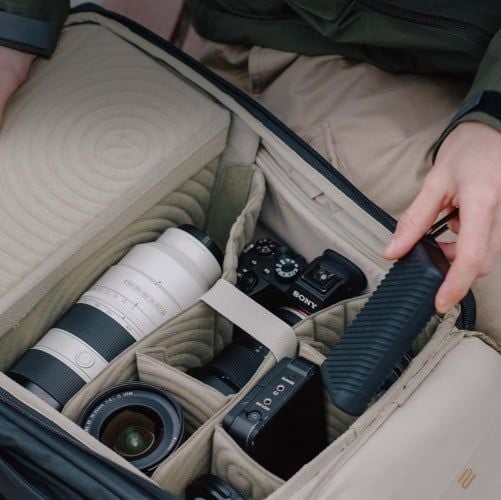 - Ngoài ra, balo còn được trang bị ngăn đựng laptop và iPad riêng biệt với khóa đóng mở bằng nam châm tiện lợi, túi bên có khóa kéo để lưu trữ các vật dụng nhỏ, ngăn đựng pin tích hợp hệ thống hiển thị điện năng và túi bên hông để đựng chân máy ảnh hoặc bình nước. Đặc biệt, các vách ngăn rời đi kèm càng làm tăng thêm khả năng tùy biến cho chiếc balo này.