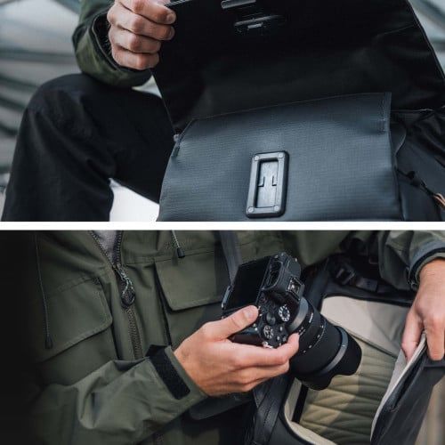 - Truy cập nhanh: Với PGYTECH OneGo 2 Backpack 2, việc truy cập nhanh vào các thiết bị trở nên dễ dàng hơn bao giờ hết, giúp bạn không bỏ lỡ bất kỳ khoảnh khắc sáng tạo nào. Hệ thống đóng mở bằng một tay độc đáo với khóa nam châm ẩn ở phía trên cho phép bạn lấy đồ nhanh chóng mà không cần nhiều thao tác phức tạp. Bên cạnh đó, thiết kế truy cập nhanh camera từ bên hông giúp bạn có thể lấy máy ảnh ra ngay lập tức để ghi lại những khoảnh khắc đáng giá trong cuộc sống.