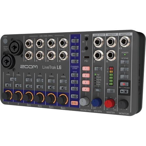 - Được thiết kế dành cho dàn nhạc cụ bàn phím và synthesizer, Zoom LiveTrak L-6 là một bộ trộn và ghi âm kỹ thuật số nhỏ gọn, di động, chạy bằng pin, cung cấp các nút điều khiển cảm ứng và chức năng trực quan, giúp bạn có thể bắt đầu một buổi thu âm nhạc chỉ trong vài phút.