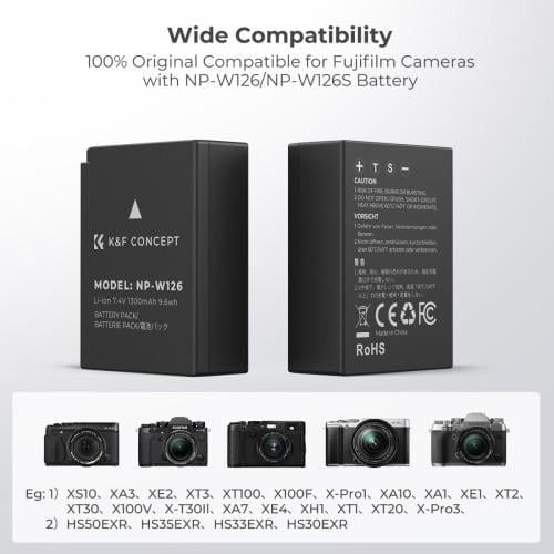 - Được giải mã hoàn toàn cho Máy ảnh Fujifilm. Bộ sạc pin NP-W126 này đã được giải mã hoàn toàn và không còn lo lỗi pop-up. Thích hợp cho máy ảnh và bộ sạc chính hãng của Fujifilm, như Fujifilm X100V, X100VI, XS10 XT30 XT20 XE4, A5, v.v.