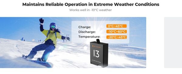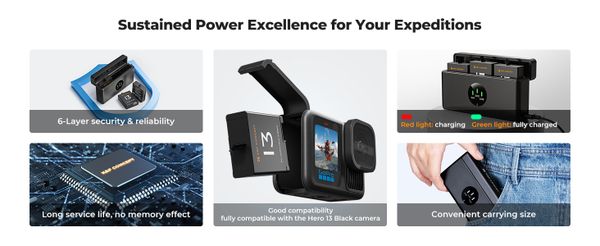 - Phù hợp với máy ảnh GoPro Hero 9/10/11/12/13. Hoàn toàn phù hợp cho máy ảnh GoPro Hero 9/10/11/12 Black với pin chất lượng cao cho độ bền lâu dài.