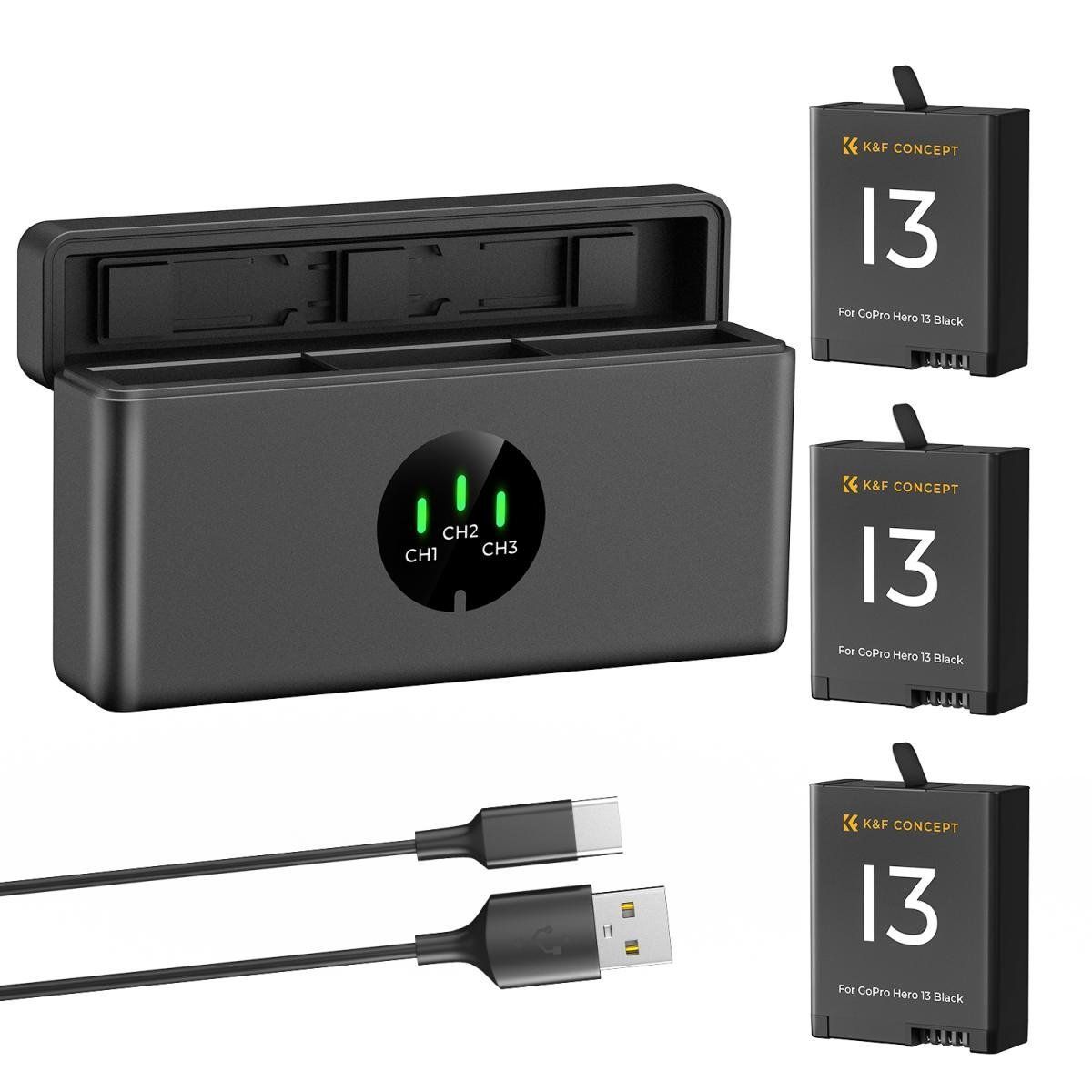 Bộ 3 Pin 1 sạc K&F Concept for GoPro Hero 13 (KF28.0087)