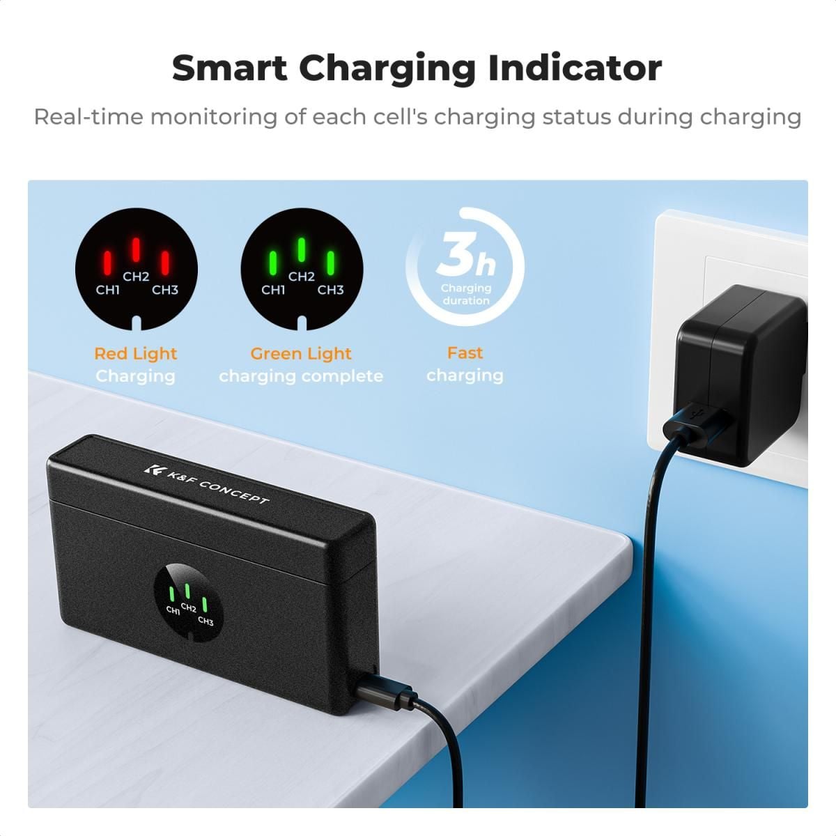 - Bộ sạc LED 3 kênh di động và dễ sử dụng cho pin GoPro Hero 9/10/11/12, có thể sạc 3 pin riêng lẻ hoặc cùng lúc. Mỗi kênh đều có đèn báo.