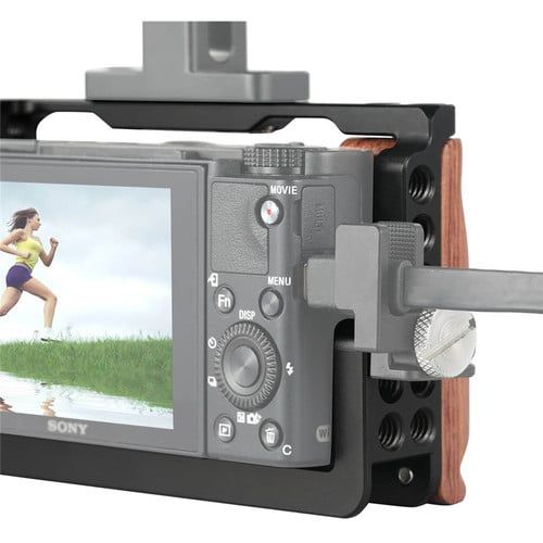 Bộ khung định hình 2105 cho Sony RX100 V/IV/III từ SmallRig là một khung bảo vệ có tay cầm bằng gỗ và một số tùy chọn để gắn phụ kiện vào máy ảnh của bạn. Nhiều ren phụ kiện 1/4"-20, giá treo phụ kiện kiểu ARRI và thanh ray NATO được tích hợp vào lồng 2105 Cage Kit duy trì quyền truy cập vào các cổng và điều khiển của máy ảnh khi được gắn vào máy ảnh Sony RX100 V/IV/III của bạn. Được làm từ hợp kim nhôm, lồng này gắn chặt quanh ngàm ống kính và bao gồm các ren chân máy 1/4"-20 và 3/8"-16 ở đáy của nó.