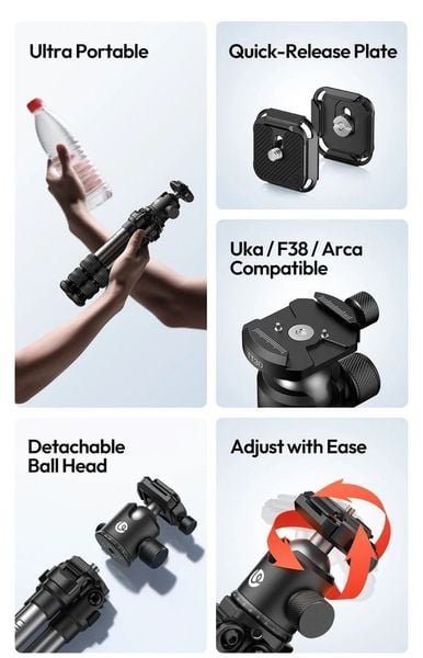 Chân máy du lịch Ulanzi TT30 có thể tháo rời 360° Ballhead tương thích với Uka F38 Arca Plate 1/4'' Lỗ mở rộng Magic Arm cho nhiếp ảnh