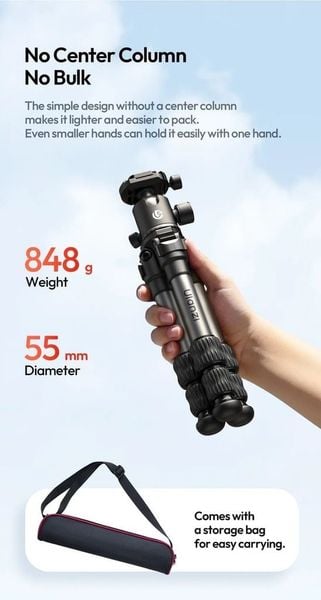 - Thiết kế đa năng và bền bỉ: Chân máy du lịch Ulanzi TT30 là một thiết bị đa năng được thiết kế để đáp ứng nhu cầu của cả nhiếp ảnh gia và nhà quay phim. Được làm từ nhôm chất lượng cao, chân máy này đảm bảo độ bền và ổn định, khiến nó trở thành người bạn đồng hành lý tưởng cho các cuộc phiêu lưu chụp ảnh và quay phim của bạn. Thiết kế nhẹ, chỉ 848g, giúp bạn dễ dàng vận chuyển, trong khi chiều dài gấp lại nhỏ gọn là 130mm giúp bạn dễ dàng mang theo trong túi đựng máy ảnh hoặc hành lý.