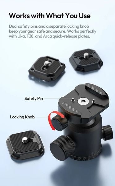 - Độ ổn định và điều chỉnh chiều cao tối ưu: Với chiều dài mở rộng tối đa là 440mm, Ulanzi TT30 cung cấp chiều cao rộng rãi để chụp những bức ảnh tuyệt đẹp từ nhiều góc độ khác nhau. Cho dù bạn chụp từ góc nhìn thấp hay cao, chân máy có thể điều chỉnh của chân máy này đảm bảo độ ổn định tối ưu, giảm nguy cơ rung máy và hình ảnh bị mờ. Tấm tháo lắp nhanh của chân máy tương thích với Uka, F38 và Arca, giúp bạn dễ dàng thiết lập và điều chỉnh nhanh chóng.