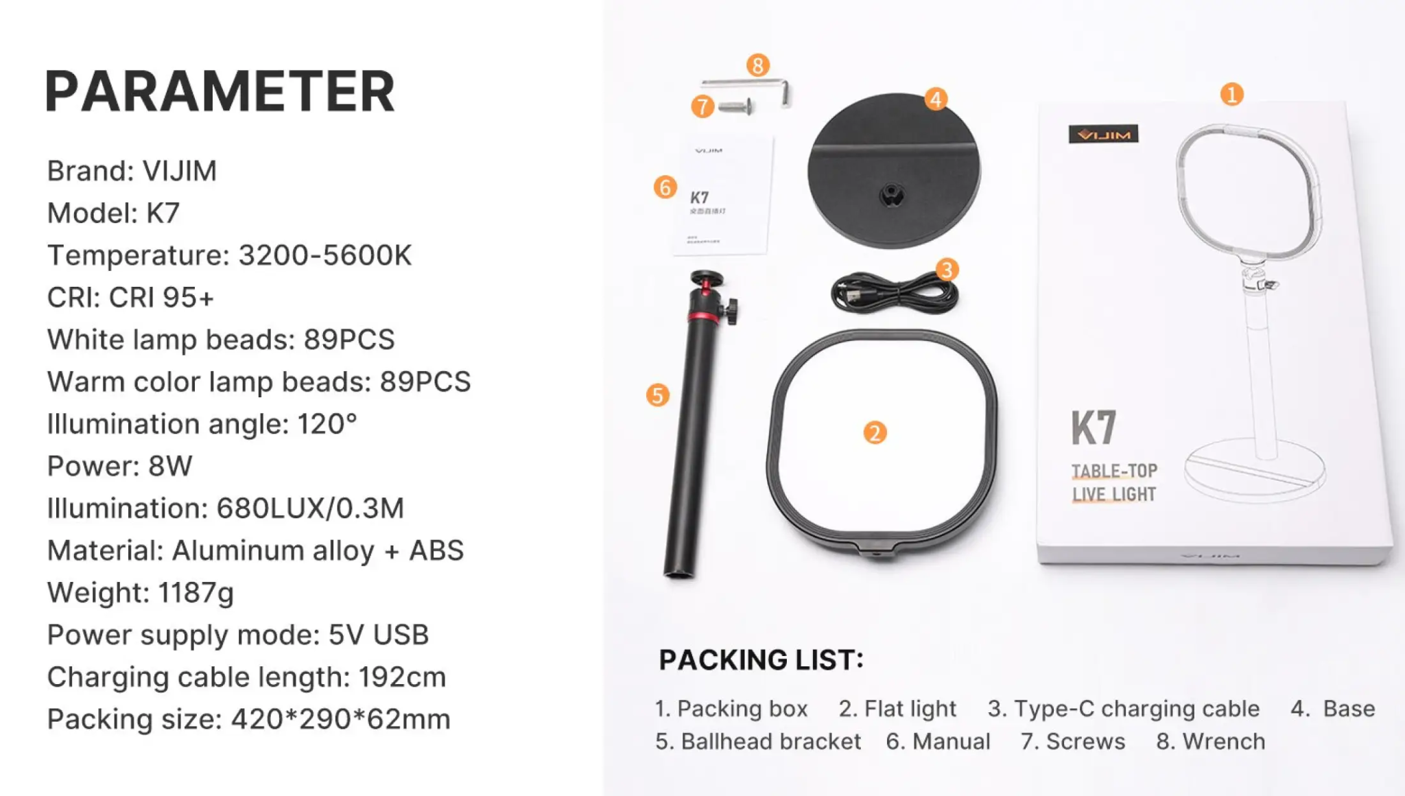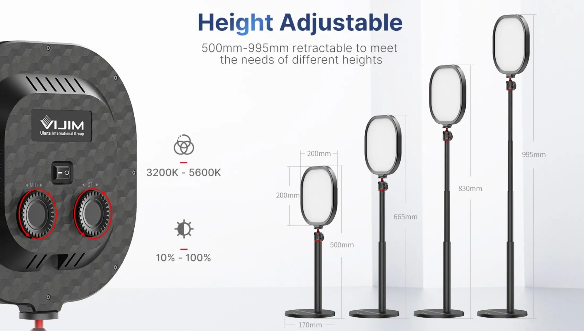 - Đèn LED Vijim K7 có nhiệt độ màu 3200-5600K, có thể điều chỉnh độ sáng 10-100% phù hợp với các cảnh khác nhau.