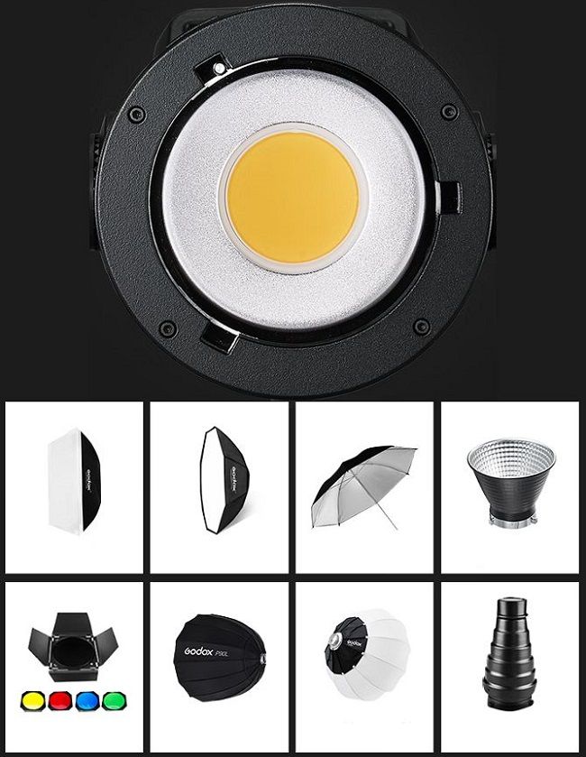 - Giá đỡ phụ kiện phía trước của Bowens làm cho thiết bị cố định tương thích với bộ điều chỉnh Godox hoặc những sản phẩm được sản xuất bởi nhiều nhà sản xuất sử dụng giá đỡ phổ biến này