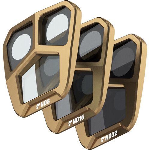 - Bằng cách sử dụng bộ 3 Bộ lọc ND của Bộ sưu tập Shutter dành cho Mavic 3 Pro của PolarPro , bạn có thể giảm ánh sáng đi vào gimbal và giảm tốc độ màn trập. Điều này mang lại chất lượng điện ảnh về màu sắc và độ tương phản trong nhiều điều kiện ánh sáng khác nhau. Bao gồm trong Bộ sưu tập Shutter là bộ lọc ND8, ND16 và ND32.