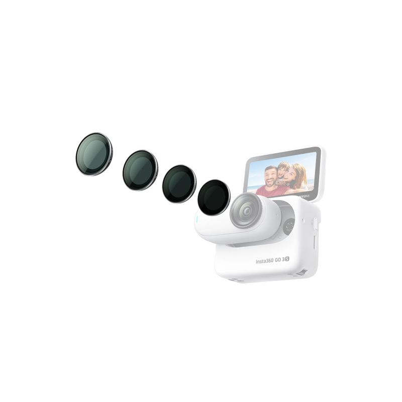 - Insta360 GO 3S ND Filter Set dễ dàng giúp bạn tạo ra những thước phim đậm chất điện ảnh và hiệu ứng làm mờ chuyển động. Set bộ lọc bao gồm các filter như ND8, ND16, ND32 và ND64.