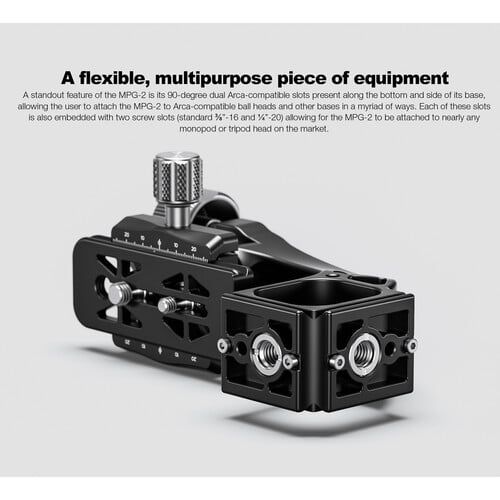 - Khi được gắn vào đầu bi hoặc đầu gắn tiêu chuẩn khác, nó tạo ra một điểm gắn nâng cao, có góc nghiêng cho máy ảnh của bạn.