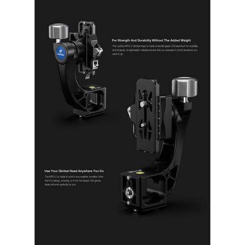 - Bộ gắn gimbal Leofoto MPG-02L dành cho đầu tripod với kẹp tháo nhanh là giải pháp hỗ trợ di động cho các nhiếp ảnh gia cần chức năng của đầu gimbal nhưng muốn tiết kiệm không gian và trọng lượng.