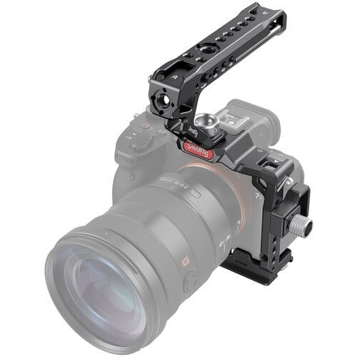 Thêm các phụ kiện và lớp bảo vệ cũng như tùy chọn mang theo cho máy ảnh không gương lật Sony a7S III của bạn với Hộp nửa lồng máy ảnh có Tay cầm trên cùng & Bộ kẹp cáp từ SmallRig. Bộ sản phẩm này bao gồm một nửa lồng máy ảnh vừa vặn, tay cầm phía trên kiểu phô mai và kẹp cáp HDMI.