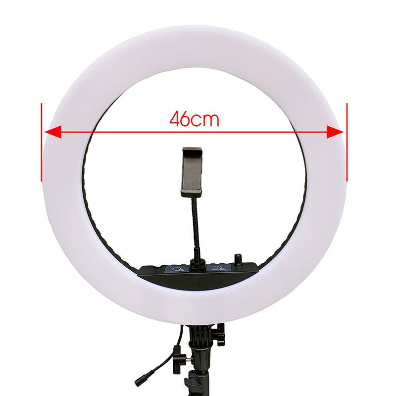 Đèn LED Livestream HQ18 có đường kính đèn rộng 45cm, tích hợp chân đèn cao hơn 2m, có thể xoay tròn 360 độ mọi góc cạnh. Bề mặt đèn được trang bị 480 bóng led cao cấp với ánh sáng và nhiệt độ màu chuẩn , giúp hỗ trợ ánh sáng tốt nhất cho việc Chụp ảnh – LiveStream – Trang Điểm…..