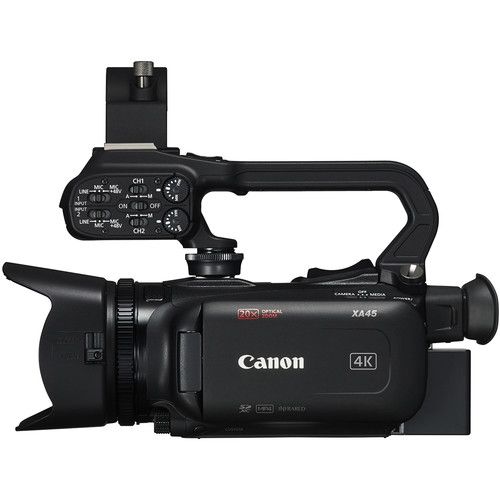 Máy quay Canon XA45 Professional UHD 4K là máy ảnh nhỏ gọn, nhẹ có tính năng quay UHD 4K, cảm biến CMOS 1/2.3", hai đầu vào âm thanh XLR, một mini-HDMI và một đầu ra BNC 3G-SDI phù hợp với ENG thể loại cho các sản phẩm theo phong cách tài liệu hoặc báo chí.