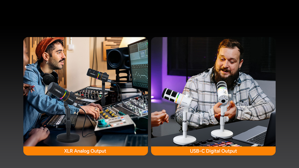 - Micrô hỗ trợ đầu ra kỹ thuật số USB-C và đầu ra tương tự XLR, tương thích rộng rãi với điện thoại thông minh, máy tính, giao diện âm thanh, v.v. Nó có thể đáp ứng nhu cầu của nhiều tình huống như podcasting, chơi game, phát trực tuyến, ghi âm, v.v.