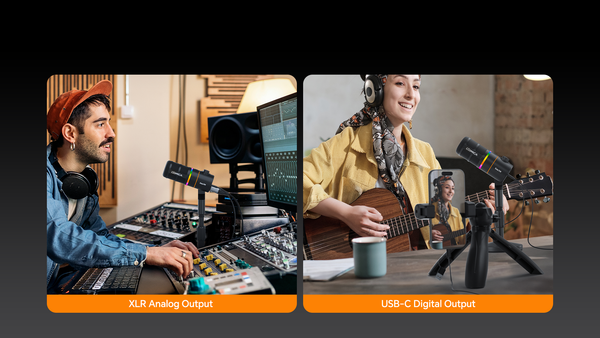 - Micrô hỗ trợ đầu ra kỹ thuật số USB-C và đầu ra tương tự XLR, tương thích rộng rãi với điện thoại thông minh, máy tính, giao diện âm thanh, v.v. Nó có thể đáp ứng nhu cầu của nhiều tình huống như podcasting, chơi game, phát trực tuyến, ghi âm, v.v.