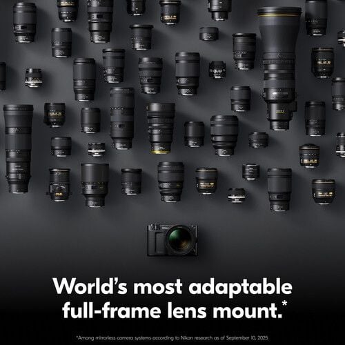 - Ngàm ống kính Z tiêu chuẩn cho phép bạn sử dụng toàn bộ dòng ống kính NIKKOR Z và nhiều loại ống kính và bộ chuyển đổi ngàm ống kính của bên thứ ba.