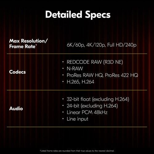 - Sự hợp tác giữa Nikon và RED mang đến khả năng tương thích rộng rãi với quy trình sản xuất, cung cấp định dạng ghi hình REDCODE RAW R3D NE cùng với N-RAW của Nikon, ProRes RAW HQ/422 HQ và các codec nén H.264 và H.265 chất lượng cao. REDCODE RAW (R3D NE) mở khóa cùng không gian màu (REDWideGamutRGB) và đường cong Log (Log3G10) như máy ảnh RED.
