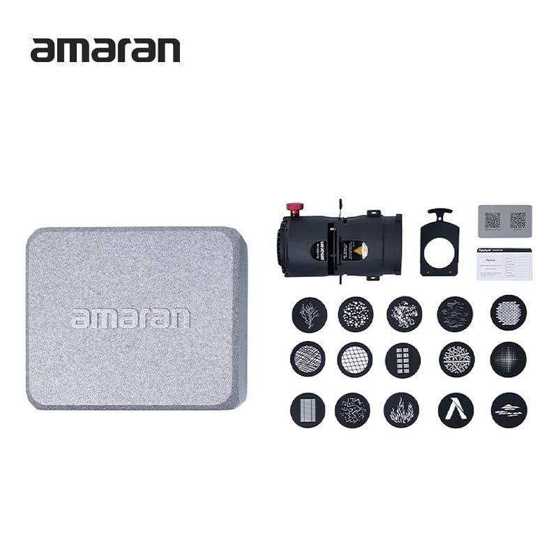 - amaran giới thiệu ống kính chiếu chính xác gắn Bowens đầu tiên với Spotlight SE. Được thiết kế với mức độ kiểm soát cao, bộ điều chỉnh quang học này ngay lập tức biến đổi đèn nguồn điểm gắn Bowens với công suất đầu ra lên đến 300W thành đèn rọi có thể định hình với chùm sáng đều. Ống kính 19° đi kèm lý tưởng để tập trung đầu ra ánh sáng thành chùm sáng hẹp hơn với phạm vi xa hơn. Linh hoạt và phù hợp với nhiều thiết lập khác nhau, bộ sản phẩm này cũng bao gồm giá đỡ gobo và 15 gobo cỡ M để tạo hình chiếu sáng độc đáo.