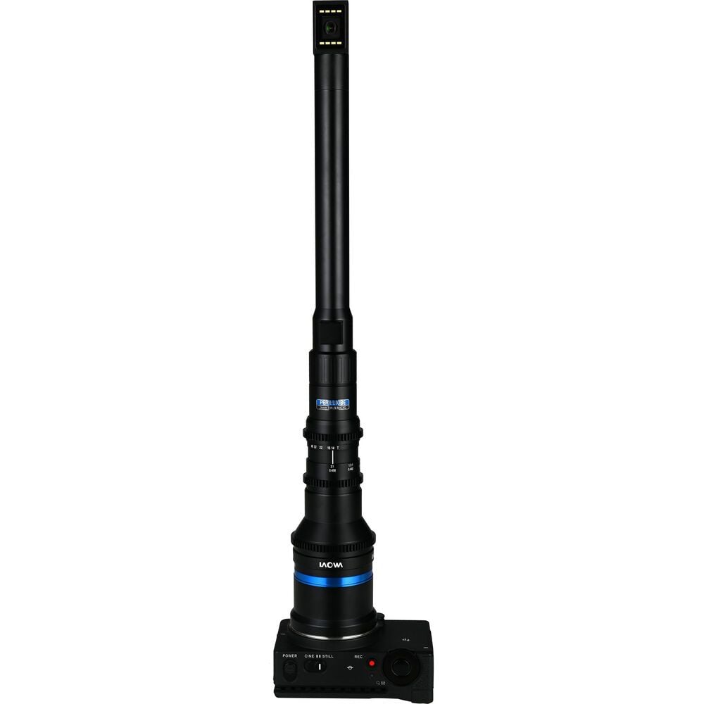 Venus Optics LAOWA 24mm T14-40 Full Frame 2x PeriProbe Cine Lens chụp những bức ảnh phóng to sắc nét với cảm biến máy ảnh full frame sử dụng ngàm Sony E và có tiêu cự 24mm. Ống thấu kính kiểu kính tiềm vọng với các đầu có thể hoán đổi cho nhau có phạm vi khẩu độ từ T14 đến T40 cho độ sâu trường ảnh sâu hoặc nông. Sử dụng nó dưới nước hoặc trong không gian chật hẹp, nhờ thùng trước không thấm nước và kiểu dáng mỏng.