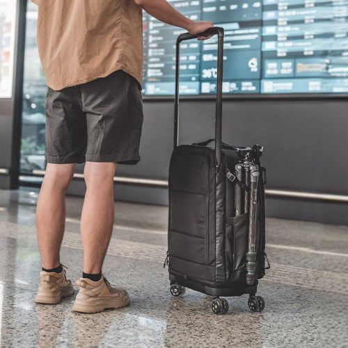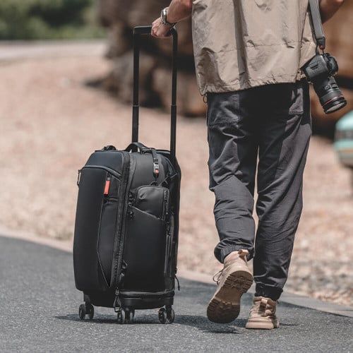 - PGYTECH Roller Camera Backpack là chiếc balo máy ảnh đa năng không chỉ lưu trữ an toàn cho 2 máy ảnh mirrorless hoặc DSLR, 9 ống kính, 1 drone DJI và nhiều phụ kiện khác, mà còn có thể biến thành một chiếc vali kéo tiện lợi. Với ngăn trước mở rộng 10L, bạn có thể thoải mái mang theo quần áo, gimbal và các vật dụng cá nhân. Dù bạn muốn đeo balo trên lưng hay kéo nó bên cạnh, Roller Camera Backpack luôn đảm bảo sự thoải mái và tiện lợi tối đa.