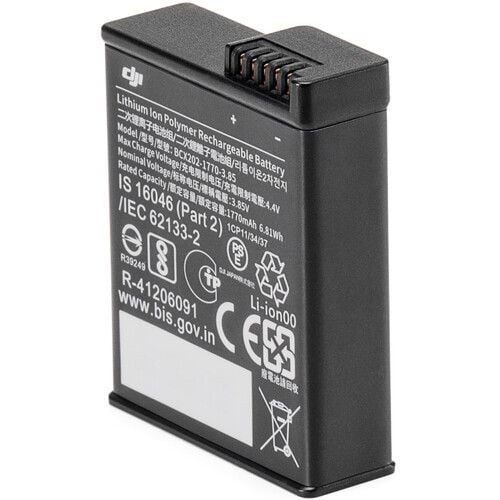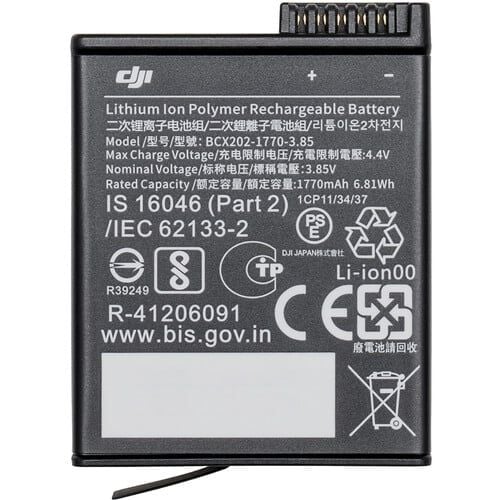 Designed specifically for the Osmo Action 3 and 4 camera, this lithium-ion polymer Extreme Battery from DJI has a 1770mAh/6.81Wh capacity and a 3.85V power output. The battery allows you to record up to 160 minutes of video with the Osmo Action 3. It can be charged within the camera or by using an optional standard or PD fast charger.