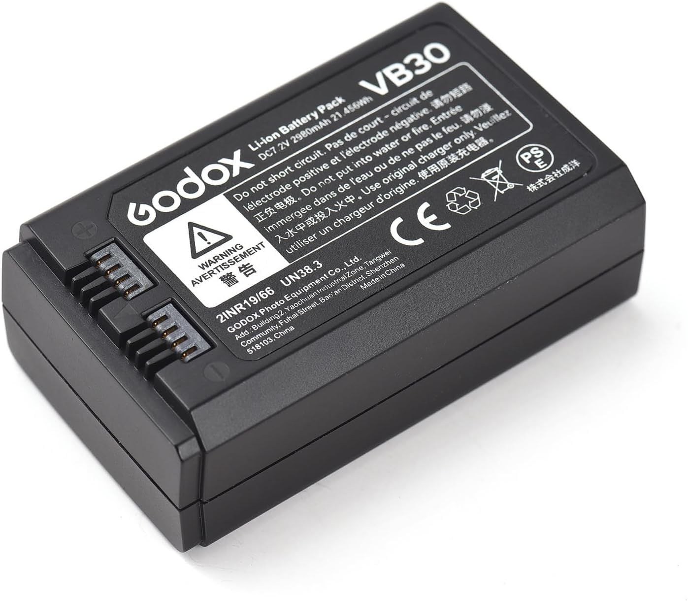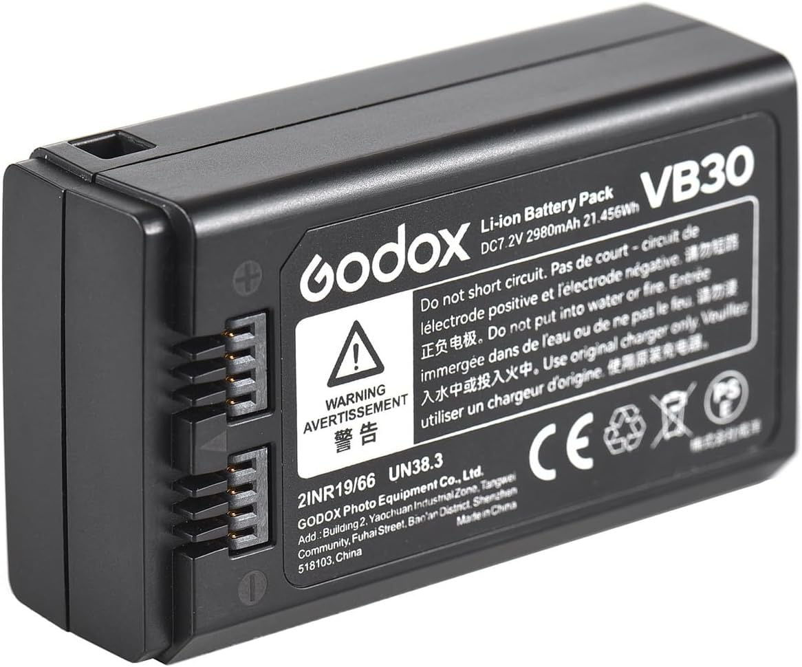 - Pin VB30 cho Đầu Flash V1Pro của Godox là nguồn năng lượng có thể sạc lại lithium-ion cho đầu. Pin này được đánh giá ở mức 7.2V và 2980mAh cho công suất 21Wh.