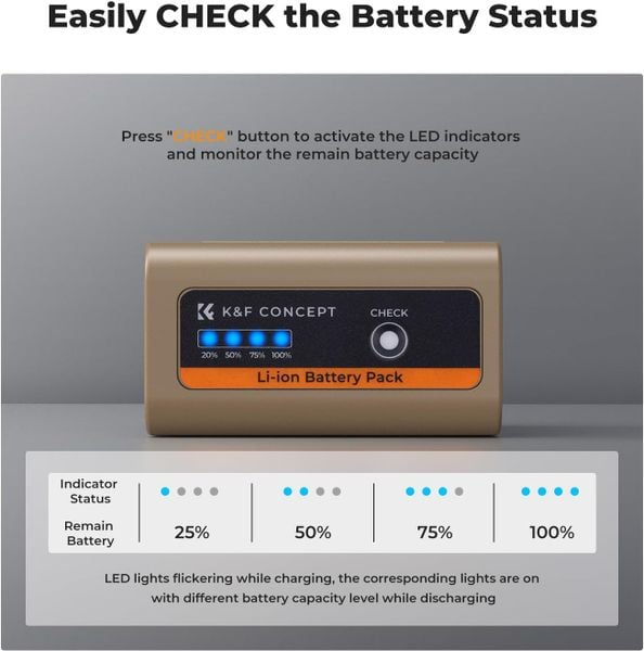 - Pin K&F CONCEPT NP-F970 10500mAh Type C