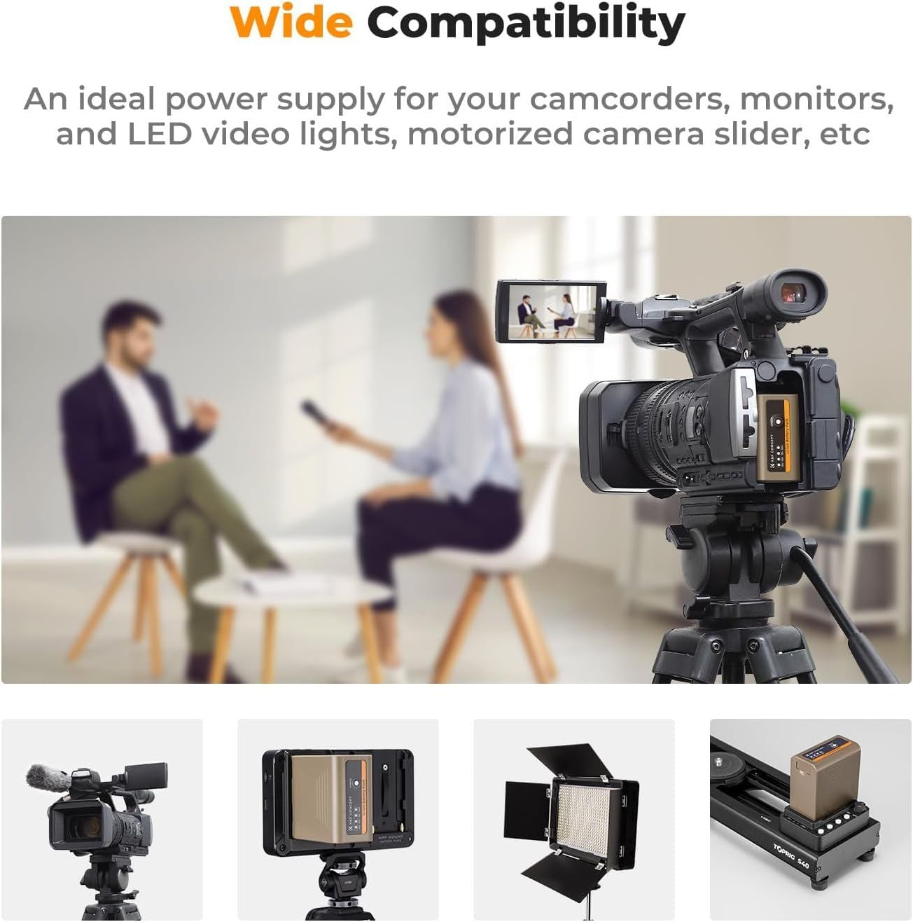 - Pin thay thế Sony Thích hợp thay pin cho các dòng máy Sony sử dụng pin Sony NP-F550, NP-F570, NP-F750, NP-F770, NP-F930, NP-F950, NP-F960, NP-F970, v.v. thích hợp cho đèn camera LED, màn hình trực tiếp và thanh trượt.