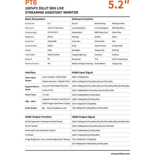 Các tính năng chính Màn Hình PORTKEYS PT6 6" 4K HDMI