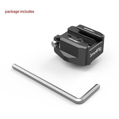 Có thể sử dụng Bộ điều hợp gắn đế giày xoay với hai vít 1/4"-20 từ SmallRig để gắn phụ kiện như micrô hoặc đèn vào giàn máy ảnh của bạn. Nó gắn vào lồng hoặc giàn máy ảnh của bạn bằng hai vít 1/4"-20 vít bị giam cầm.