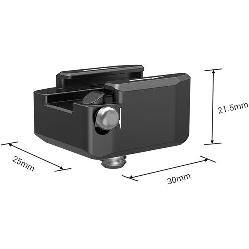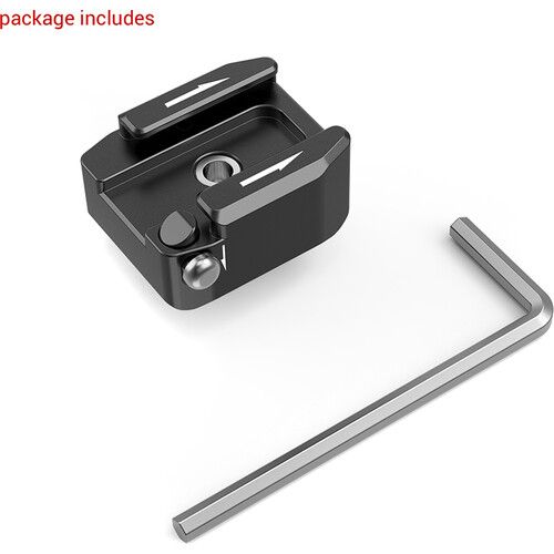 Có thể sử dụng Bộ điều hợp gắn đế giày xoay với một vít 1/4"-20 từ SmallRig để gắn phụ kiện như micrô hoặc đèn vào giàn máy ảnh của bạn. Nó gắn vào lồng hoặc giàn máy ảnh của bạn bằng một vít 1/4"-20 đinh vít.