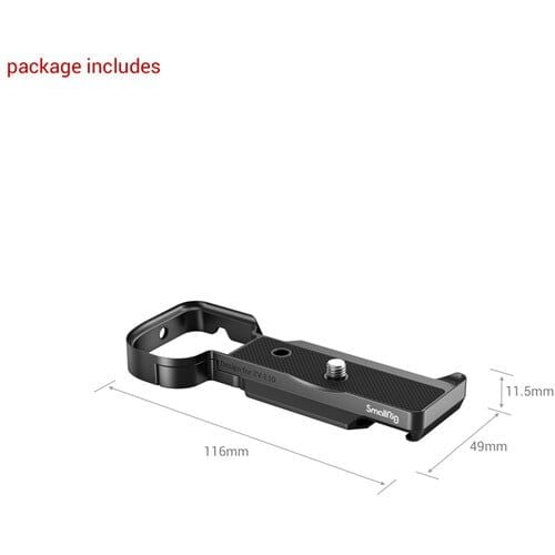 Tay cầm mở rộng cũng cung cấp nhiều điểm lắp. Nó có một khớp nối kiểu Arca tích hợp. Lỗ ren 1/4"-20 ở bên cạnh cho phép bạn gắn máy ảnh theo chiều dọc trên giá ba chân mini hoặc giá đỡ khác. Ngoài ra còn có giá treo giày ở phía dưới, có thể được sử dụng để hỗ trợ các phụ kiện khi bạn gắn máy ảnh theo chiều dọc . Ngoài ra, các ren 1/4"-20 ở phía dưới cho phép tương thích với nhiều giá đỡ và phụ kiện. Tay cầm mở rộng cố định máy ảnh của bạn mà không cần dụng cụ bằng vít vòng chữ D 1/4"-20 đi kèm.