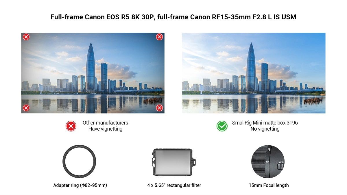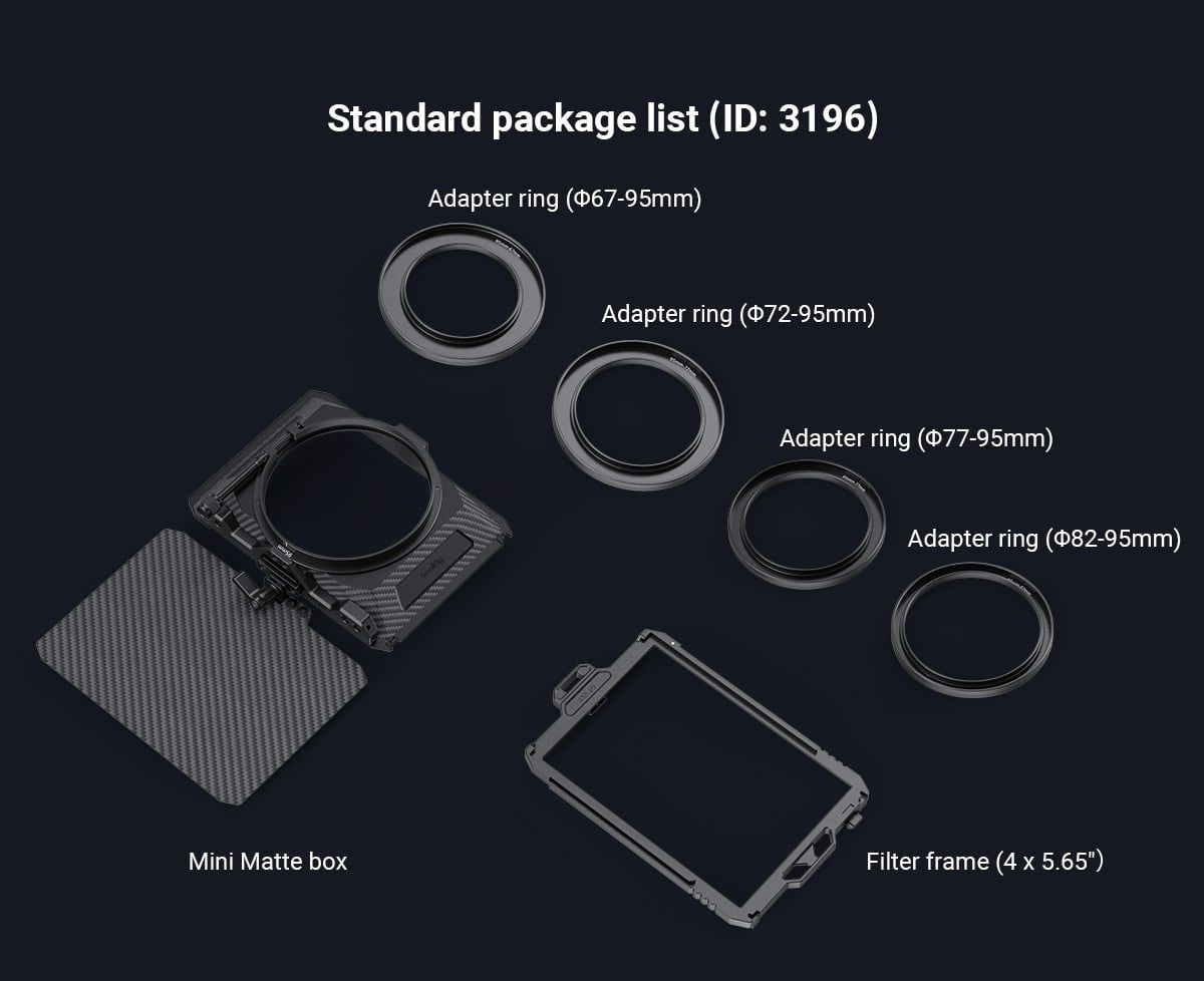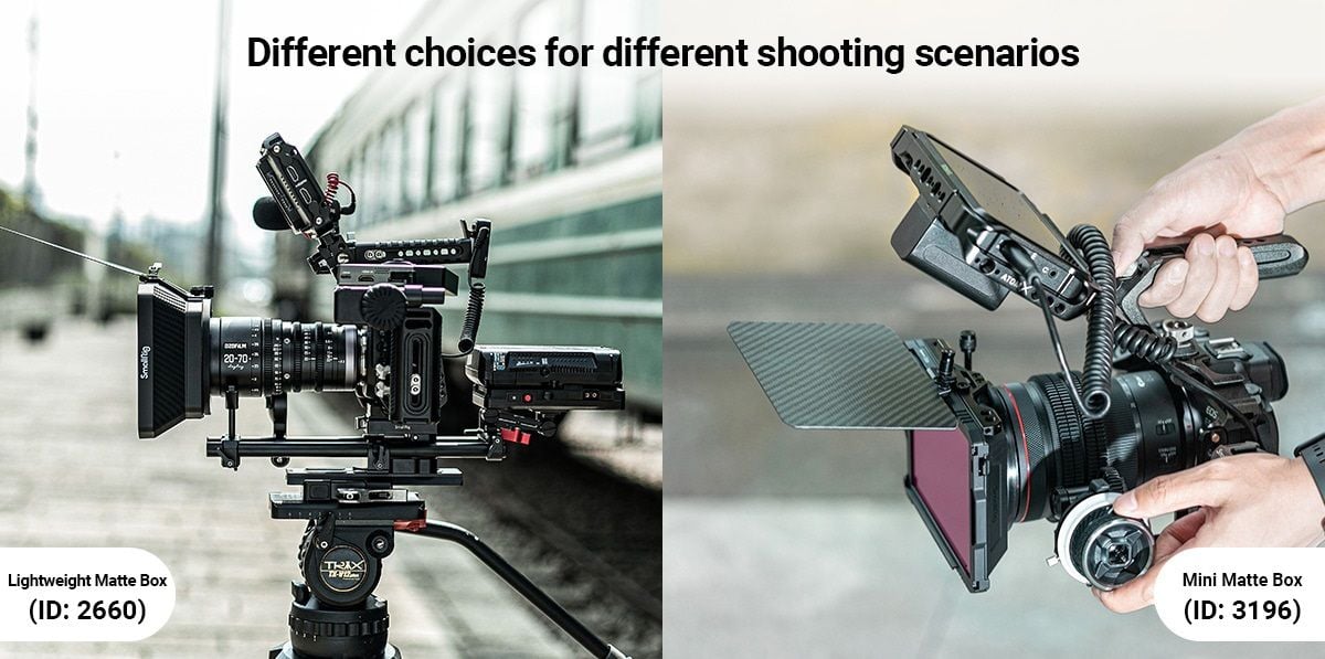 SmallRig Mini Matte Box 3196 được thiết kế cho máy ảnh DSLR và máy ảnh không gương lật để ngăn ánh sáng mặt trời hoặc ánh sáng khác gây chói và lóa cũng như kiểm soát hình ảnh trên màn hình.