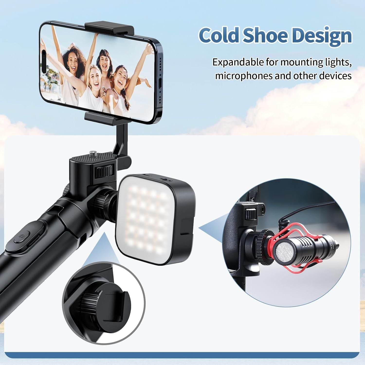 - 1/4" và đế lạnh Chân máy điện thoại Đi kèm với giá đỡ vít 1/4" cho kẹp điện thoại máy ảnh nhỏ gọn của bạn, cho thấy tính linh hoạt tuyệt vời. Giá đỡ đế lạnh có thể xoay 360° phù hợp với đèn, micrô và các phụ kiện khác.