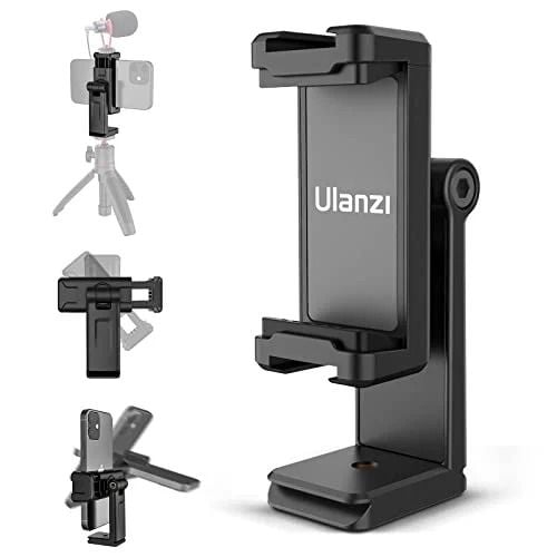 - Ngàm kẹp điện thoại mini Ulanzi St-22 mới nâng cấp với x2 Cold shoe mount. Bạn có thể gắn micrô và đèn LED cùng lúc khi quay video.