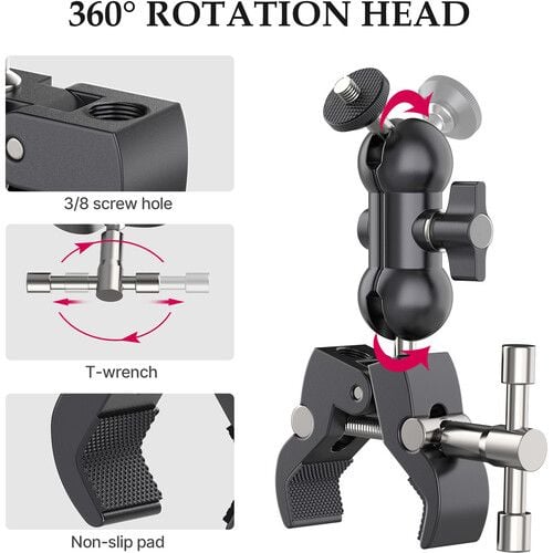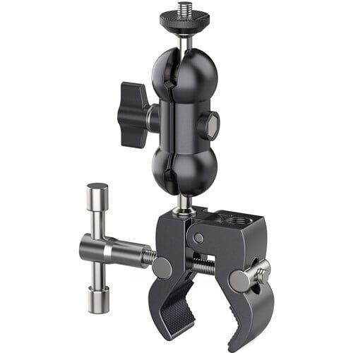 R093 Super Clamp từ Ulanzi là giá treo kết hợp kẹp đa chức năng với cần đầu bi 2,9". Bộ kết hợp này hỗ trợ lực lên đến 3,3 lb và có thể được sử dụng để gắn phụ kiện máy ảnh có ren 1/4" -20, đèn nhỏ hoặc thành phần khác trên bề mặt có chiều rộng từ 0,5 đến 2,2". Kẹp giữ chặt bằng tay cầm chữ T và cánh tay kết hợp với một đầu bi nhỏ ở mỗi đầu.