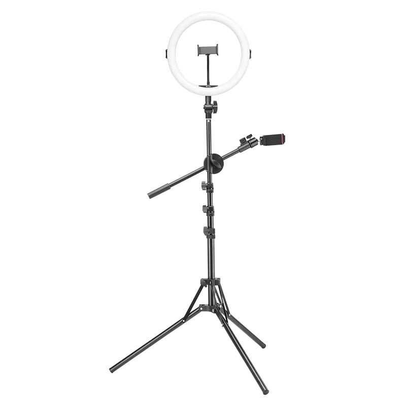 - Cánh tay thu gọn với kẹp điện thoại: Có thể kéo dài đến 70 cm
