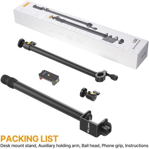 Sử dụng bàn máy tính hoặc bàn của bạn để tạo nội dung video chất lượng chuyên nghiệp bằng cách sử dụng Giá treo bàn máy ảnh LS02 với Cánh tay phụ kiện phụ trợ từ VIJIM. Thiết lập này có thể phù hợp với những người sáng tạo sản xuất nhiều loại video, chẳng hạn như hướng dẫn trang điểm, video phản ứng, mở hộp, hướng dẫn kỹ thuật, v.v. Tay chính kẹp vào bàn của bạn theo cách thủ công và kéo dài theo chiều dọc từ 17,3 đến 41,3" thông qua ba phần có thể khóa. Tay phụ kẹp thủ công vào cột này và kéo dài sang hai bên. Gắn máy ảnh DSLR trên giá đỡ chính hoặc sử dụng điện thoại của bạn với kẹp đi kèm . Tay phụ kiện lý tưởng để sử dụng với bảng đèn LED tùy chọn, chuông gọi hoặc micrô bên ngoài